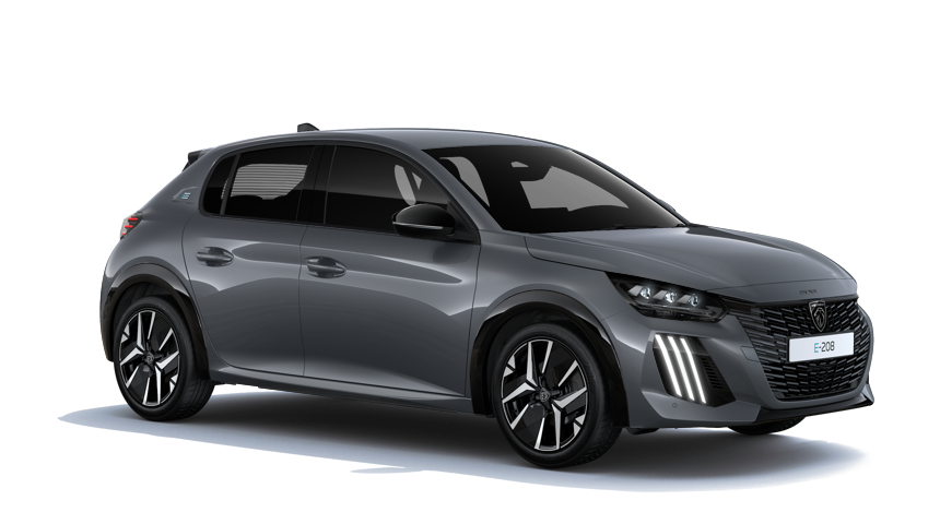 La PEUGEOT E-208 dispose d'une face avant affirmée, d'une signature lumineuse Full LED Technology(i) Disponible de série sur la version GT à l’avant et LED à l’arrière et de jantes de 17 pouces.